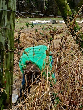 On Saturday afternoon, John forms beds and covers them with composting plastic.